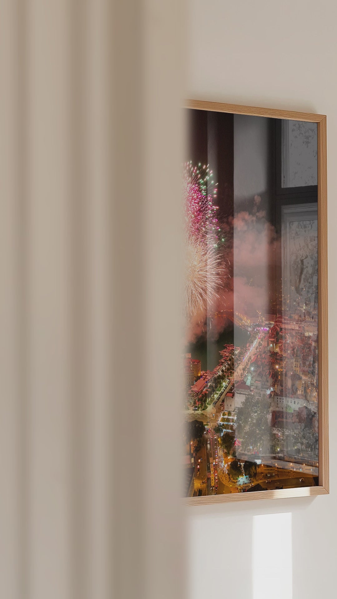A view of Split’s Riva lit by fireworks, captured from above on a summer evening. The photograph brings together the energy of celebration and the calm rhythm of the Adriatic below. A striking piece for those who love travel, colour, and cityscapes with a sense of life and movement. Works well in living rooms, offices, or modern interiors that need a touch of warmth and vibrance.