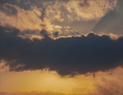 Soft golden light breaks through dark clouds, creating a calm and balanced moment in the sky. This photograph captures the quiet beauty of evening light, perfect for anyone who enjoys nature, travel, or peaceful imagery. Works well in bedrooms, living rooms, or any space where you want a sense of warmth and calm.