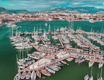 An aerial view of Split’s marina, where rows of boats meet the turquoise Adriatic. The photograph captures balance between sea, structure, and city, highlighting the quiet rhythm of coastal life. Ideal for those who love travel, architecture, and natural colour. Works well in living rooms, offices, or bedrooms with a relaxed coastal feel.