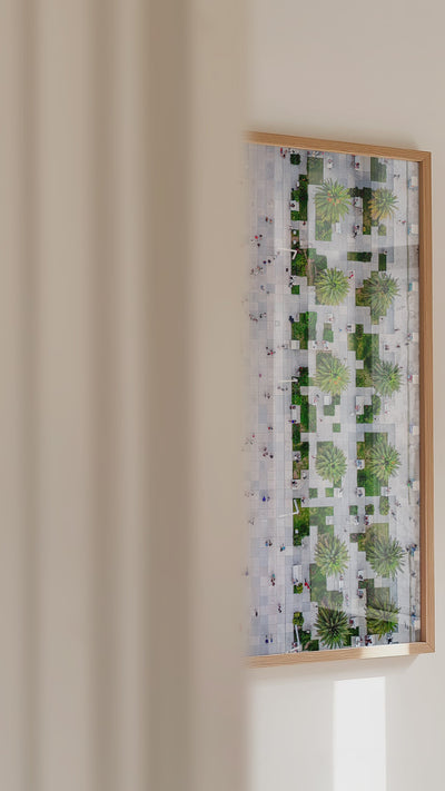 Aerial view of Split’s Riva captures the city’s vibrant seafront from above. Palm trees, patterned stone, and people in motion form a colourful scene full of life and balance. This photograph brings a touch of the Adriatic coast to your wall and suits anyone who loves travel, coastal cities, or modern photography. Ideal for living spaces, hallways, or studios.