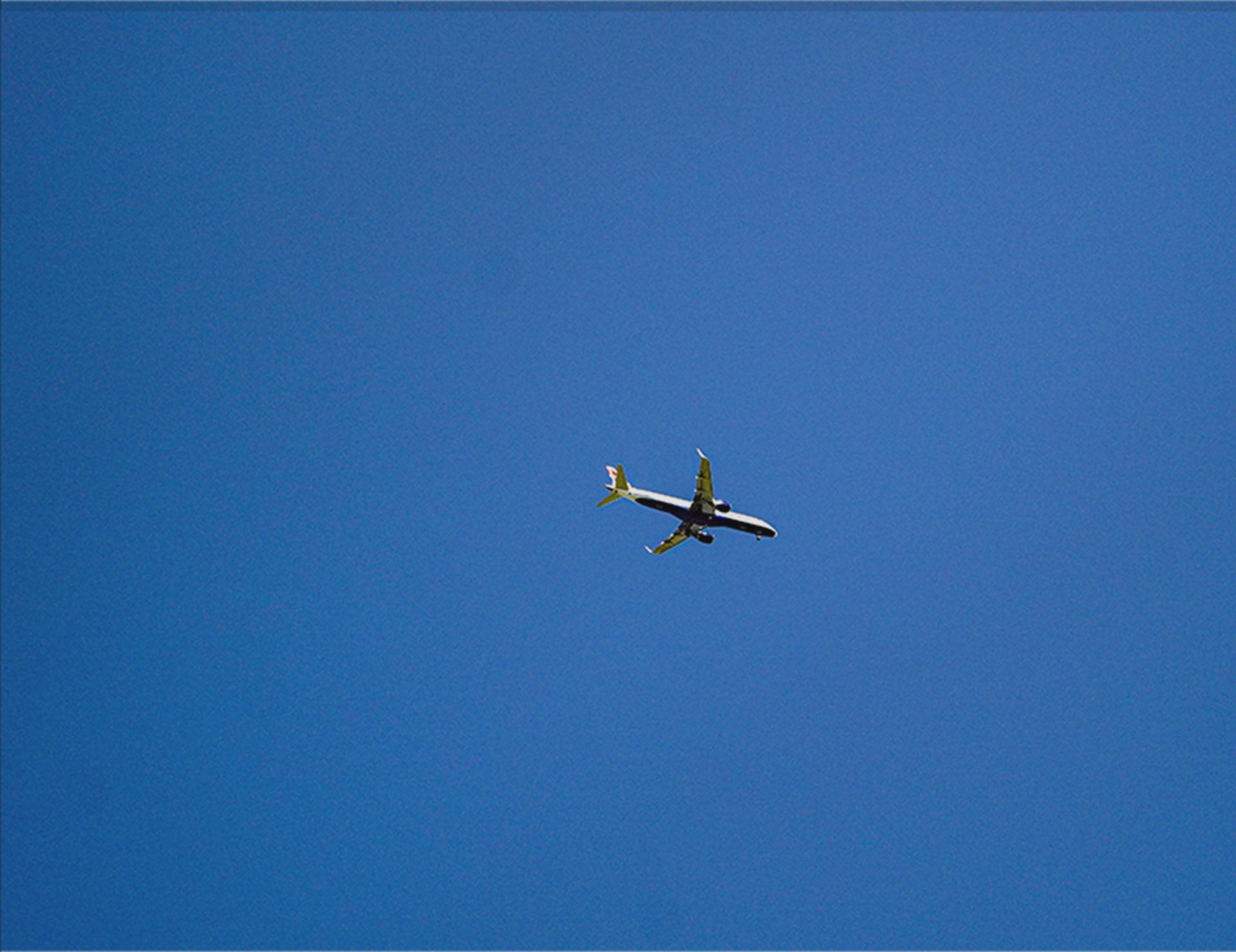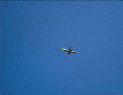 A minimalist capture of a plane crossing a clear blue sky. This photograph highlights space, balance, and stillness in motion, creating a sense of calm and possibility. Ideal for those who love travel, simplicity, and open compositions. Works well in bedrooms, offices, or modern living areas.