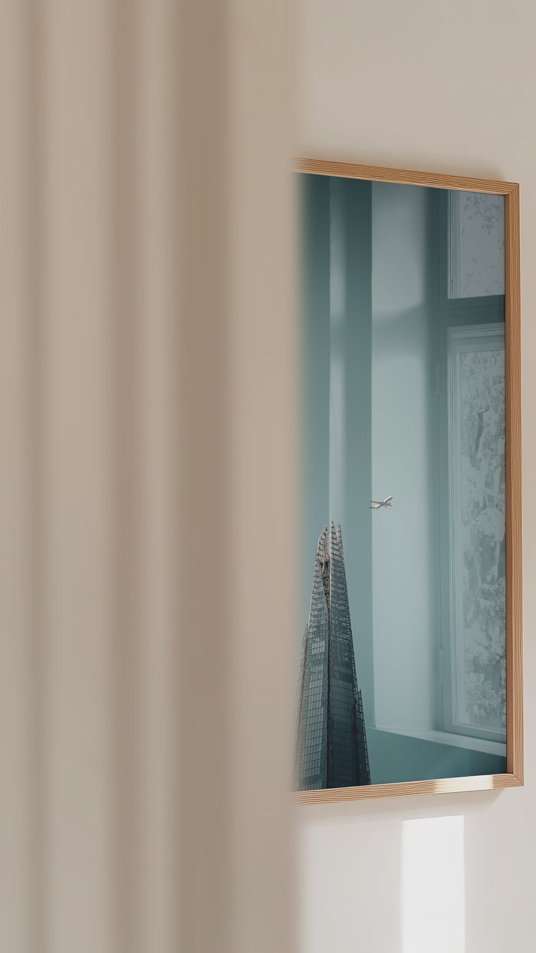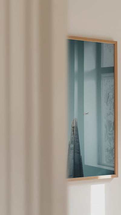 London’s Shard framed by a passing plane. Clean lines and muted tones create a minimalist composition that brings a sense of balance and quiet detail to the wall. Works well as a standalone piece or as part of a gallery wall.
